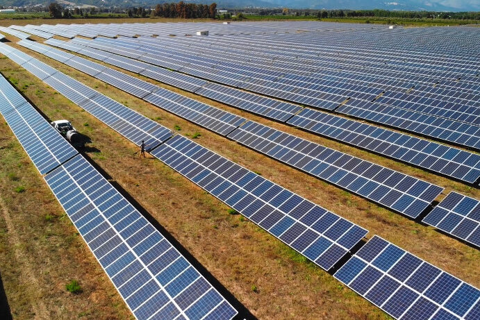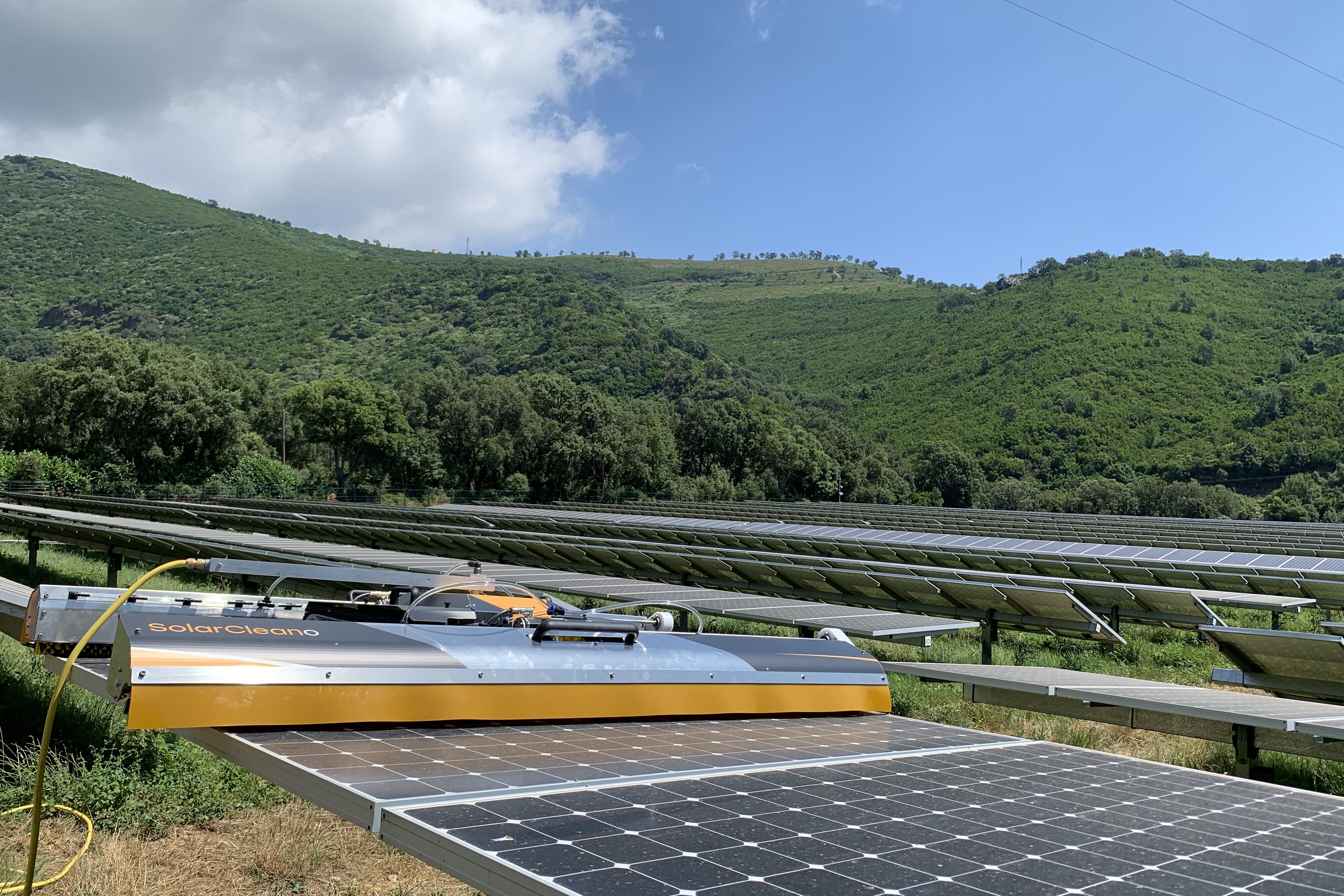 Entretien des panneaux solaires d’une centrale au sol (Corse) 12MWc de puissance installée 75 000 m2 de surface de panneaux solaires