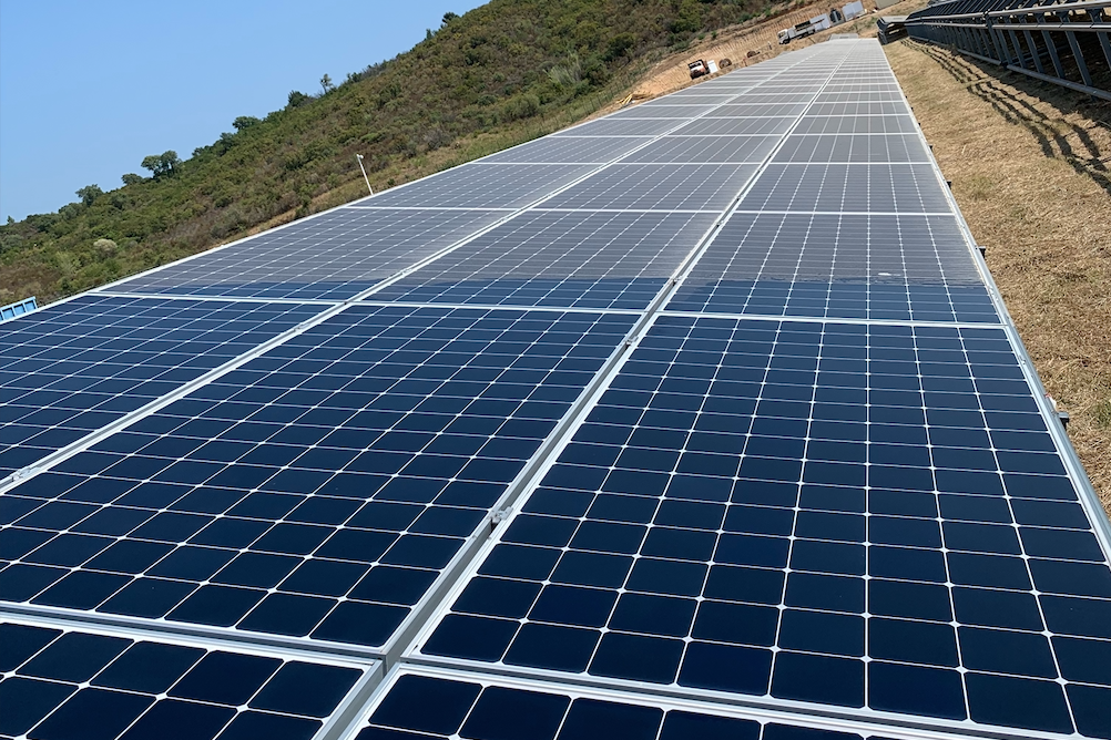 Entretien des panneaux solaires d’une centrale au sol (Corse) 4,8MWc de puissance installée 22 000 m2 de surface de panneaux solaires