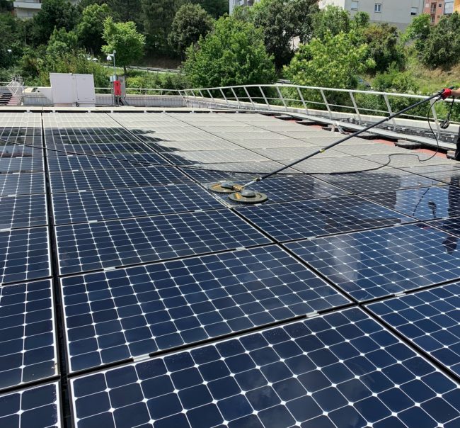 Entretien des panneaux solaires d’une toiture (Corse) 2 MWc de puissance installée 5000 m2 de surface de panneaux solaires