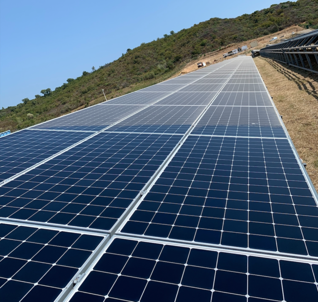 Entretien des panneaux solaires d’une centrale au sol (Corse) 4,8MWc de puissance installée 22 000 m2 de surface de panneaux solaires