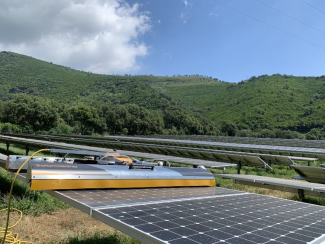Entretien des panneaux solaires d’une centrale au sol (Corse) 12MWc de puissance installée 75 000 m2 de surface de panneaux solaires